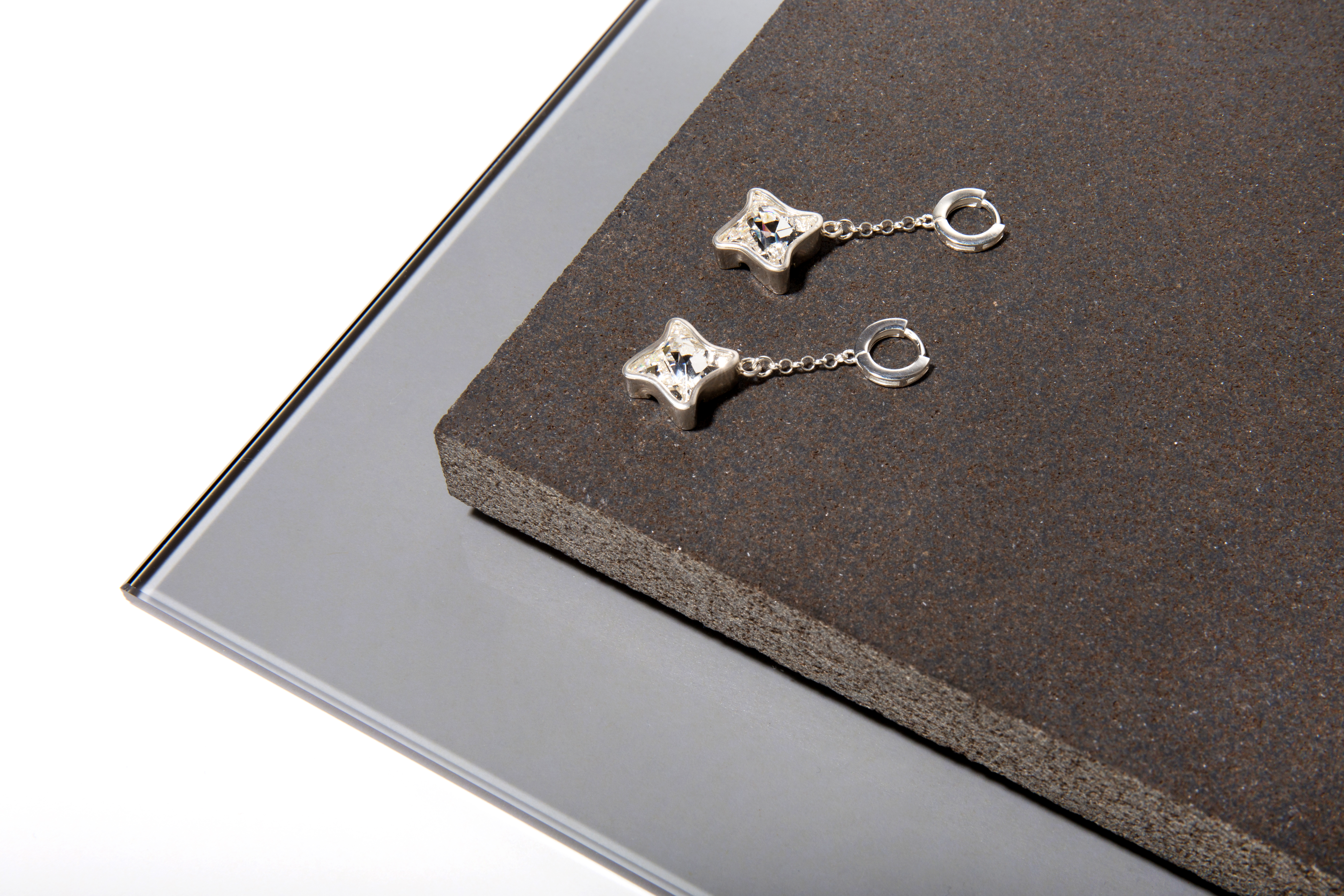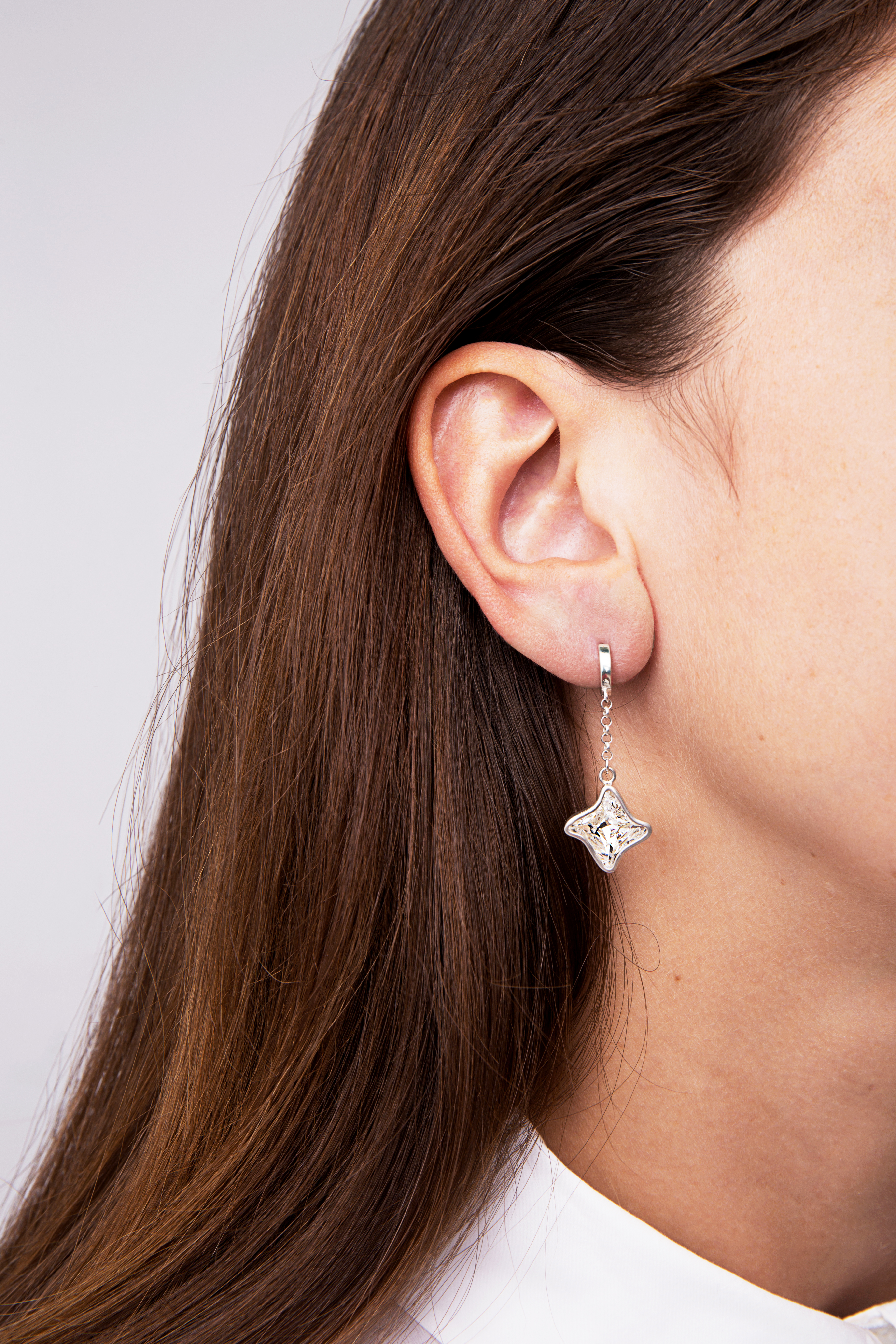 Prachtige handgemaakte oorbellen van sterling zilver met grote stervormige zwarte (Kuro) of witte (Shiro) kristallen. De kristallen hangen aan sterling zilveren kleine ringetjes van 1 cm.